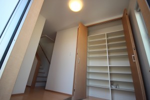 大きなシューズインクロークは家族にうれしい。