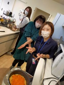 桃栗給食担当のまゆみさん(山本さん)、とびちゃん(石飛さん)が