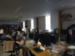 お昼時で事務所にはたくさん人がいたため