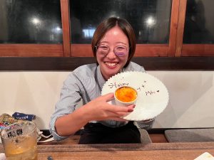 クラッカーを鳴らした後はささやかながら、住宅アシスタントの3人でプレゼントをお渡しいたしました。