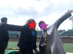 ←甲子園の3塁側のベンチに入ることができました。