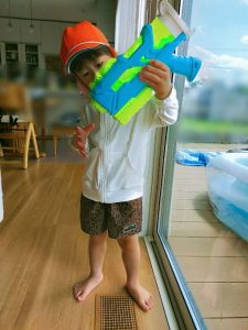\水鉄砲で涼みつつ…/