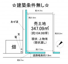 ◆土地面積347.09㎡は地目畑(119㎡)も含みます。◆農地転用要す(農地法第5条許可)