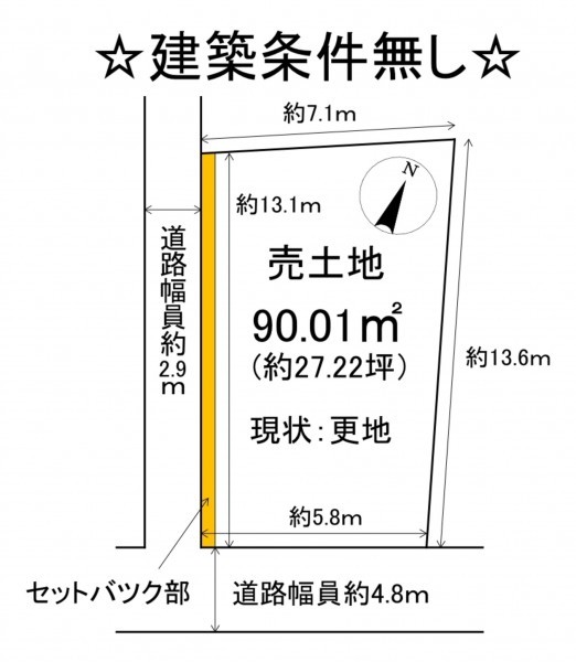 ◆西側道路接道部、約7.2㎡セットバックあり