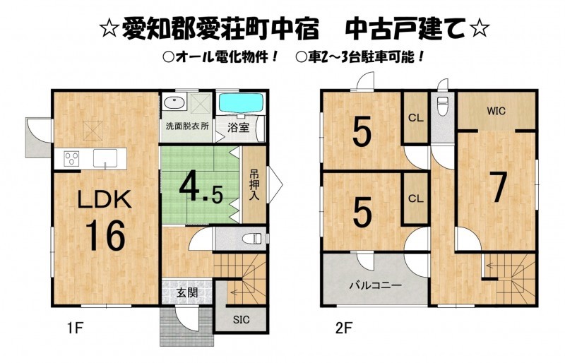 - オール電化、システムキッチン、カウンターキッチン、IHクッキングヒーター、ウォークインクローゼット、駐車場3台分、トイレ2箇所、電気